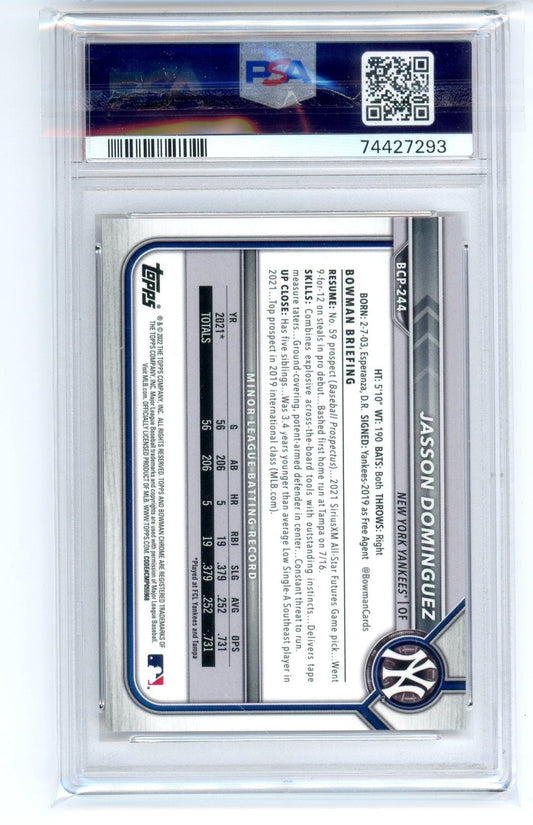 Jasson Dominguez 2022 Bowman Chrome X Orange X-fractor #'d 4/5 PSA 10