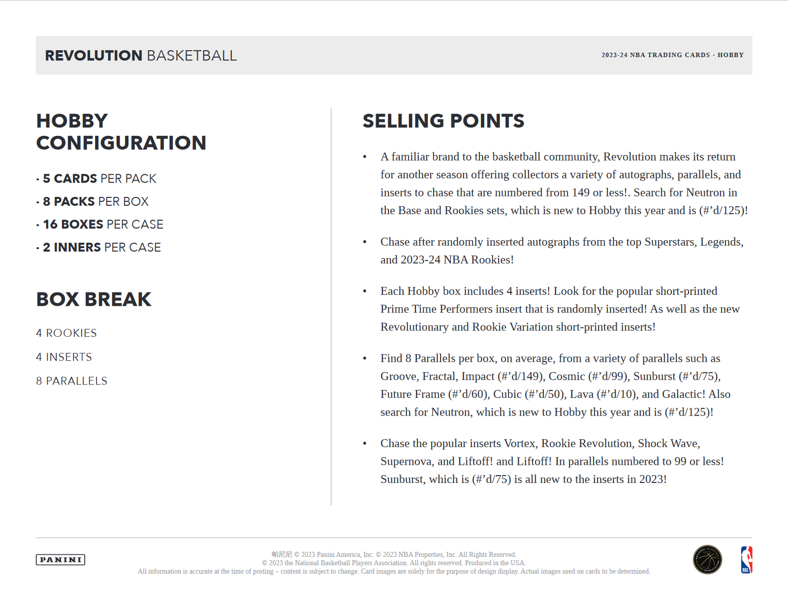 - A familiar brand to the basketball community, Revolution makes its return for another season offering collectors a variety of autographs, parallels, and inserts to chase that are numbered from 149 or less!. Search for Neutron in the Base and Rookies sets, which is new to Hobby this year and is (#’d/125)!