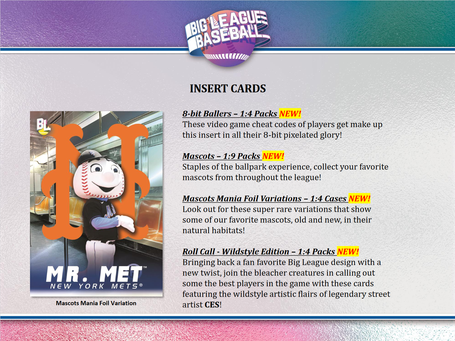 Bringing back a fan favorite Big League design with a new twist, join the bleacher creatures in calling out some the best players in the game with these cards featuring the wildstyle artistic flairs of legendary street artist CES!